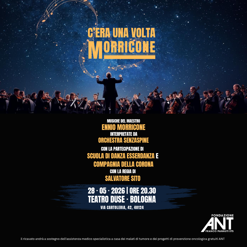 L’Orchestra Senza Spine porta sul palco del Teatro Duse i capolavori del Maestro Ennio Morricone – dalle distese del West alle grandi storie d’amore, dai western di Sergio Leone ai film che hanno segnato generazioni – in un concerto-spettacolo che unisce musica dal vivo e danza.